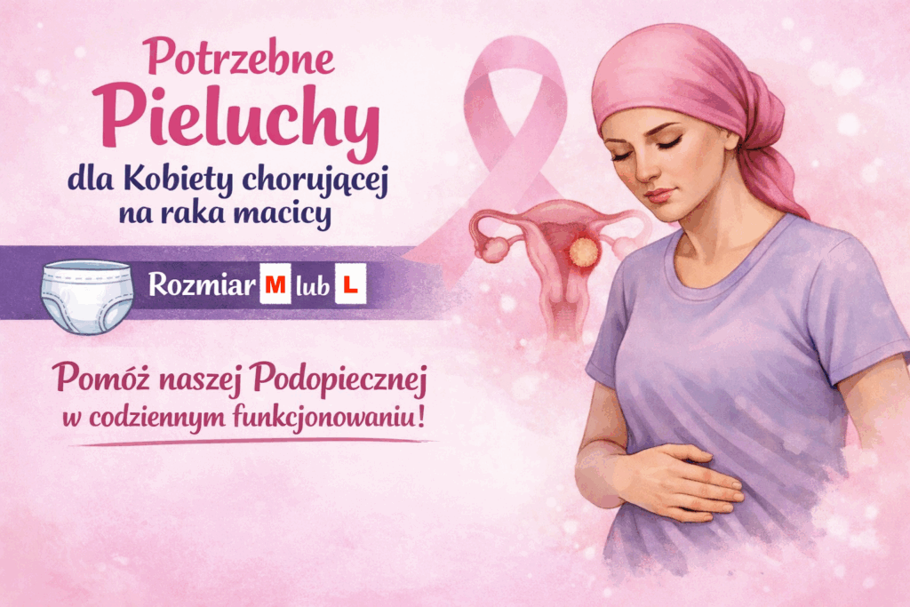 Już wcześniej zbieraliśmy pieluchy dla naszej innej Podopiecznej chorej na raka macicy. Niestety, w związku z pogorszeniem się jej stanu, dalsza terapia nie jest już możliwa.