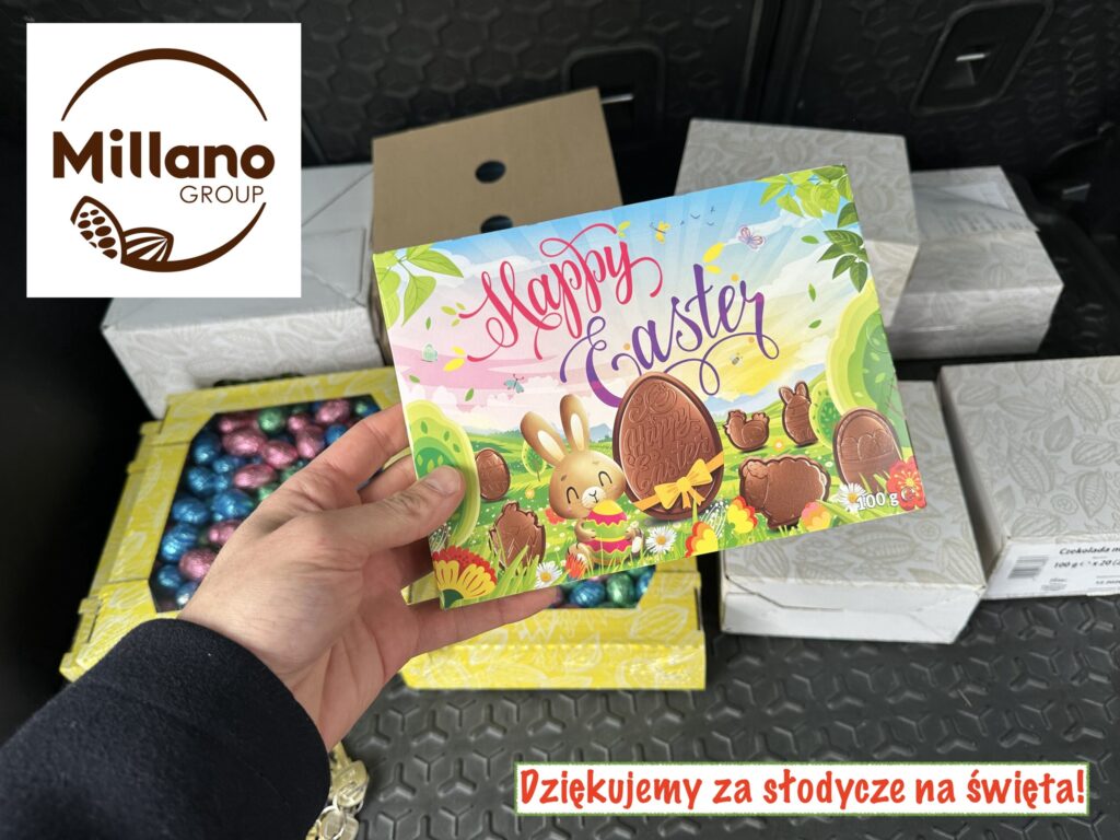 Składamy również wielkie podziękowania firmie Millano Group (i Pani Marcie Ordowskiej), która ofiarowała dzieciom czekolady na święta wielkanocne – te słodkie upominki wywołają wiele uśmiechów i ciepłych emocji.