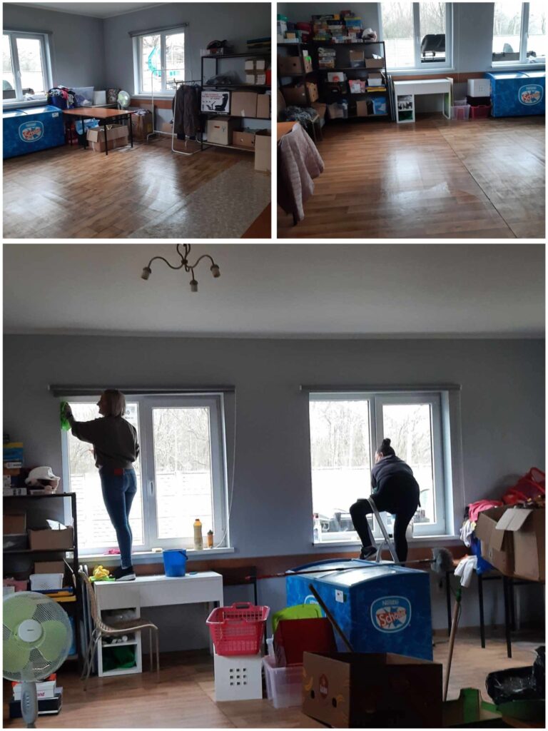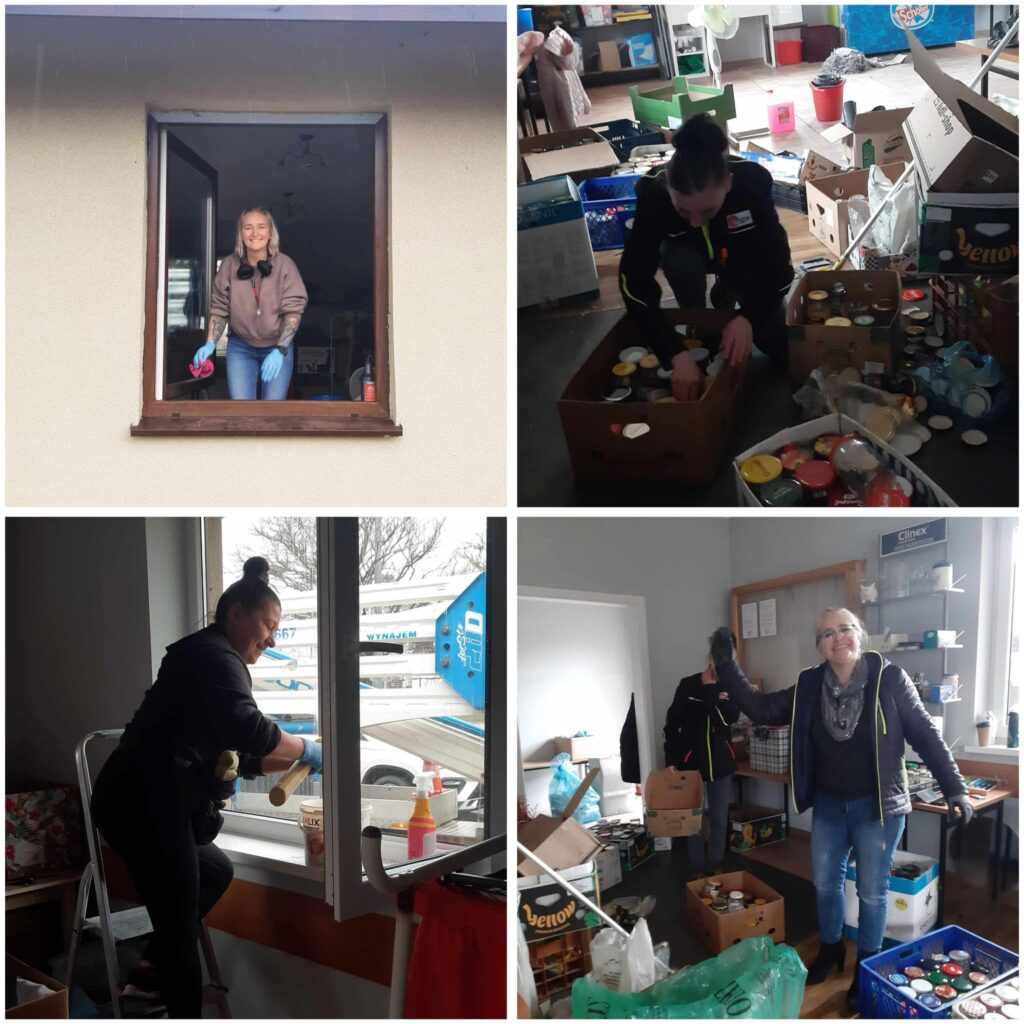 Z całego serca dziękujemy także wszystkim Wolontariuszom, którzy pomogli w wiosennym sprzątaniu Punktu Pomocowego. W szczególności kierujemy słowa wdzięczności do Lucyny, która nie tylko zorganizowała dodatkowych pomocników, ale również zadbała o podnośnik, dzięki któremu udało się wyczyścić rynny i zadbać o porządek wokół budynku.