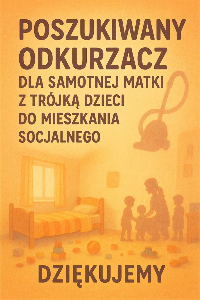 W tym tygodniu zwracamy się także z prośbą o odkurzacz dla samotnej matki z trójką dzieci – bardzo przyda się w mieszkaniu socjalnym, które ta rodzina otrzymała w ostatnim czasie.