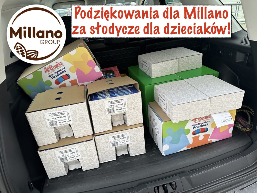 Millano Group za świąteczną transzę słodyczy dla dzieci – wspaniała firma, na którą zawsze można liczyć! Serdecznie pozdrawiamy Panią Martę, z którą zawsze nam się doskonale współpracuje.