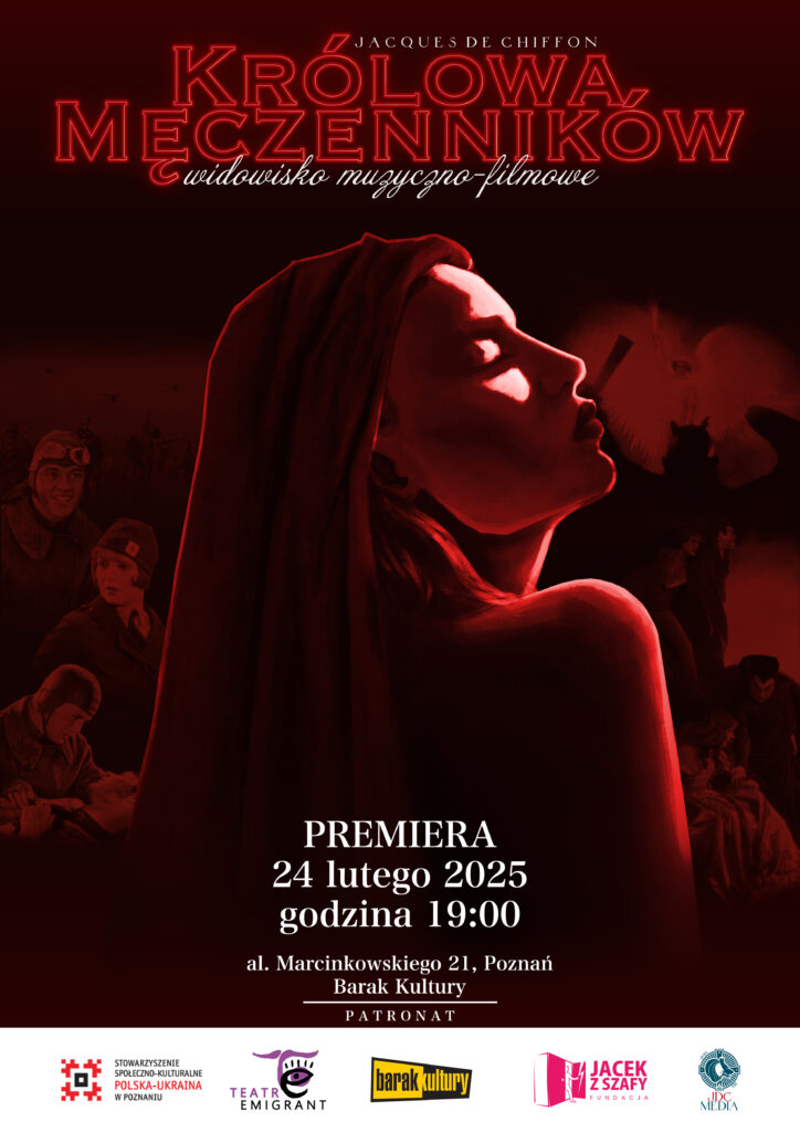 W trzecią rocznicę wybuchu wojny oddaliśmy hołd ofiarom i bohaterom Ukrainy poprzez sztukę. W Baraku Kultury w Poznaniu odbył się nasz spektakl muzyczno-filmowy „Królowa Męczenników” – wydarzenie, które przypomniało, że mimo bólu i strat, kultura i duch wolności są niezniszczalne.