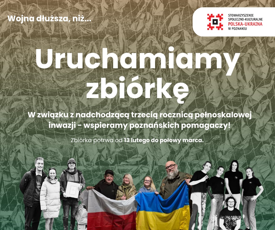 24 lutego mija trzecia rocznica pełnoskalowej inwazji Rosji na Ukrainę. Z tej okazji organizujemy zbiórkę na wsparcie trzech wyjątkowych organizacji poznańskich: Fundacja Czerwony Mak, Nets For UA oraz Jacek z Szafy.